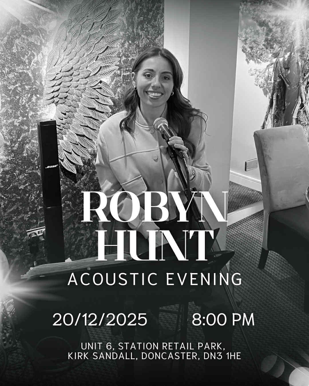 Join us for an unforgettable evening of live music with the amazing Robyn Hunt – a talented guitarist and singer who’ll be bringing you a mix of her own set alongside some festive Christmas favourites. ✨🎄
